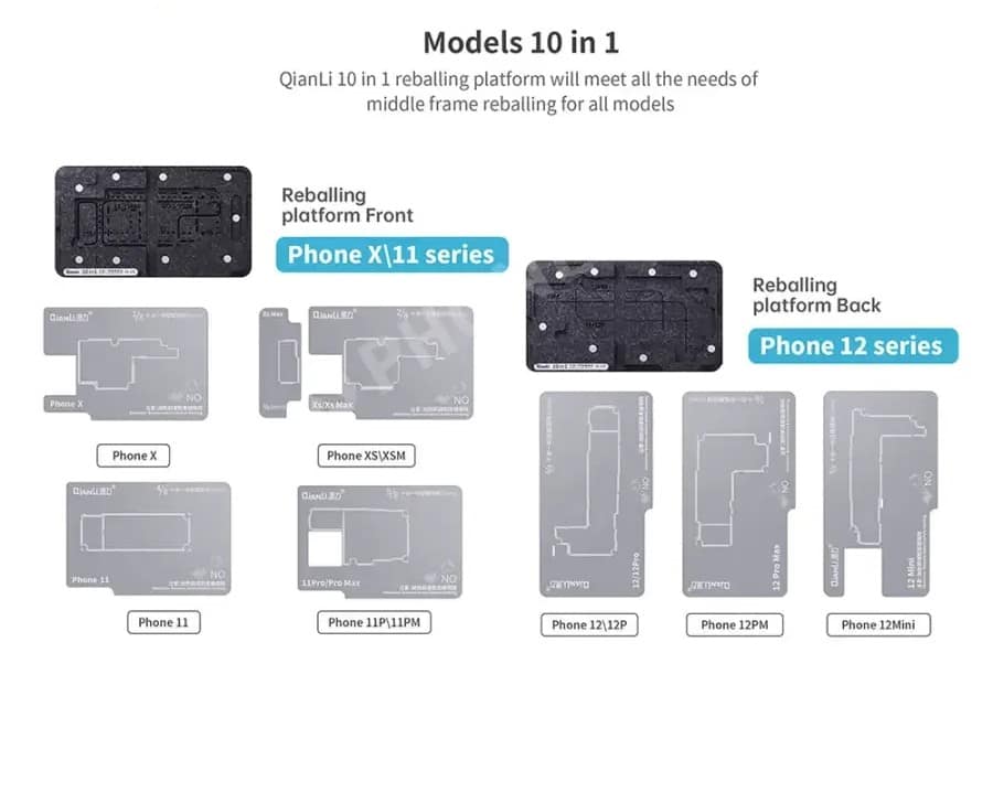 شبلونة طبقات QianLi 10-in-1 المغناطيسية الشاملة – منصة إعادة بناء الميدل فريم من iPhone X إلى 12 Pro Max
