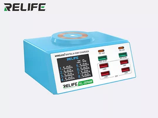 • شحن لاسلكي بقوة 15 واط: يتميز موديل RELIFE RL-309AW بقاعدة شحن علوية تدعم الشحن السريع، مما يسهل فحص الهواتف الحديثة دون كابلات.
