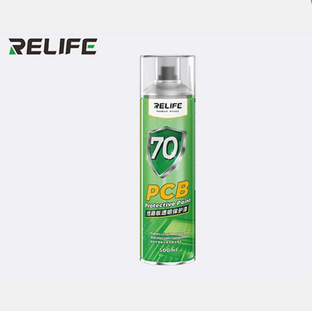 يعد طلاء الحماية الشفاف هذا الحل النهائي لتأمين عمليات الصيانة، حيث يعمل كطبقة عازلة تحمي المسارات المكشوفة واللحامات الحساسة من العوامل البيئية. تم تصميم هذه النسخة لتوفير طبقة رقيقة جداً لا تؤثر على مظهر البوردة ولكنها تمنع الالتماس الكهربائي، بما يتوافق مع معايير الجودة التي تضمنها شركة Relife Official لضمان طول عمر الأجهزة المصلحة.