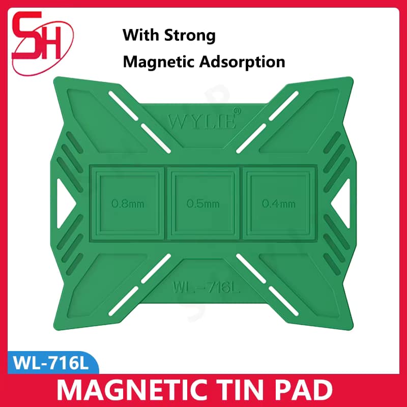 تُعد منصة **Wylie WL-716L** الحل الثوري لمشكلة تحرك الشبلونة أثناء وضع القصدير السائل. بفضل خاصية الامتصاص المغناطيسي، تقوم هذه الـ **بادة** بجذب الشبلونة المعدنية وإحكام قبضتها على الآيسي الموضوع فوقها، مما يضمن خروج كرات قصدير متساوية تماماً. توفر الـ **WL-716L** بيئة عمل مستقرة تفوق أي حامل بورد تقليدي في التعامل مع الآيسيات المنفصلة، مما يجعلها الخيار الأول لمحترفي الـ CPU وذاكرة الهواتف الذكية، وفقاً لابتكارات شركة Wylie.